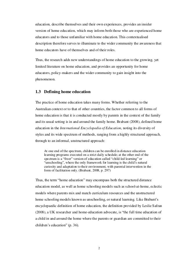 Otherwise known as home education or home learning, this system is defined as the education of children in the home by parents . History tells us that before the law on compulsory school attendance was mandated, the majority of early education happened within the family . . . . From simple essay plans, through to full dissertations, you can . . .