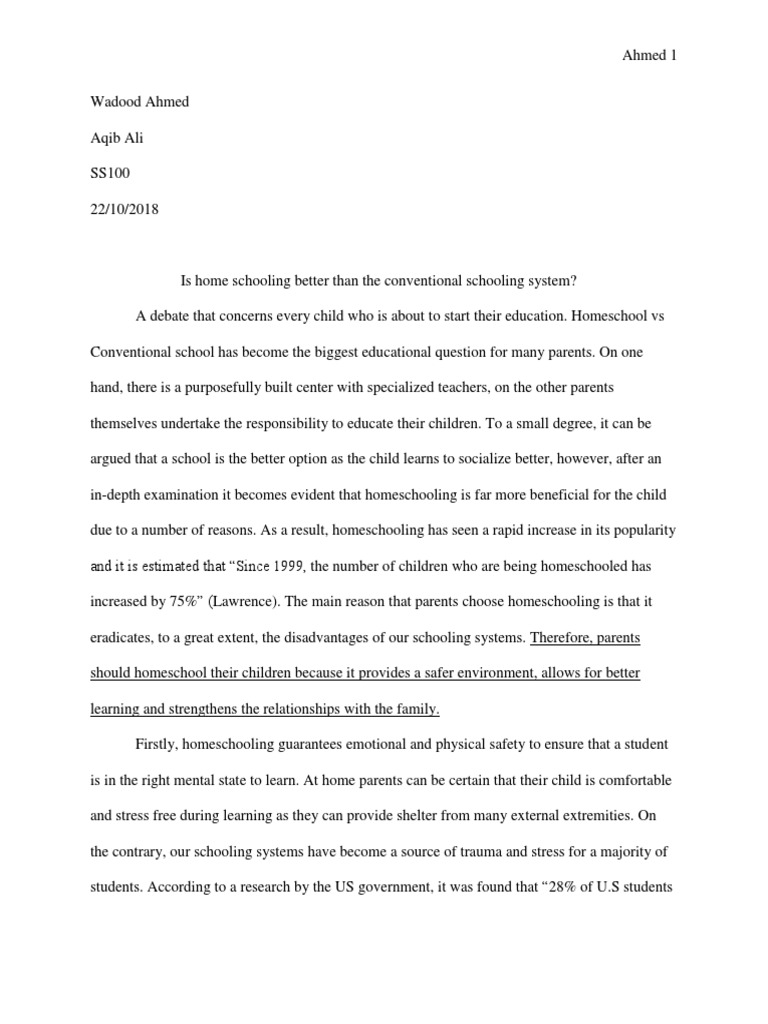 Argumentative Essay Sample on Home Schooling - Blog . . .