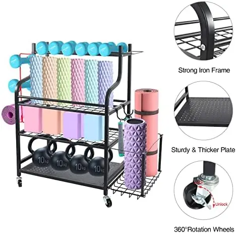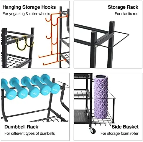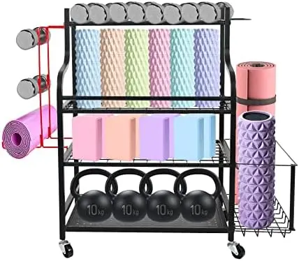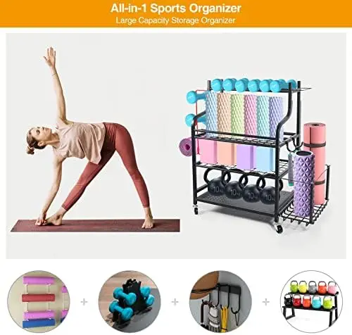 Home Gym Storage Rack | All in One Workout Storage with Wheels and Hooks | Gym Exercise Equipment Storage for Dumbbells Kettlebe - Купить с бесплатной доставкой