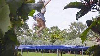 Homemade topless chick on trampoline