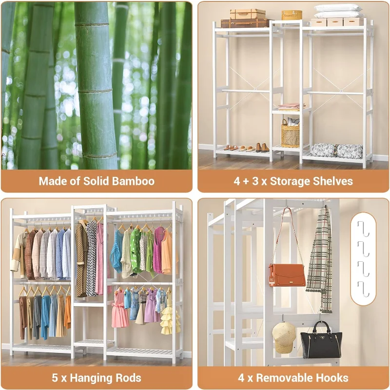 "Homykic Bamboo Clothes Rack, Large Closet System Clothing Rack for Hanging Clothes, Freestanding Garment Rack with Shelves and 5" * Buy Now With Free Shipping Just For $91