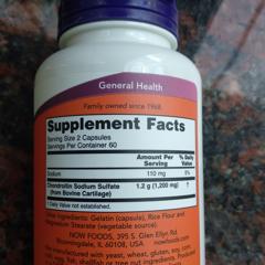 У нас вы найдете 163 отзыва о товаре «Хондроитина сульфат, 600 мг, 120 капсул» производителя «Now Foods», информацию о том как принимать, как использовать, из чего состоит, на что обратить внимание при приеме, подробное описание