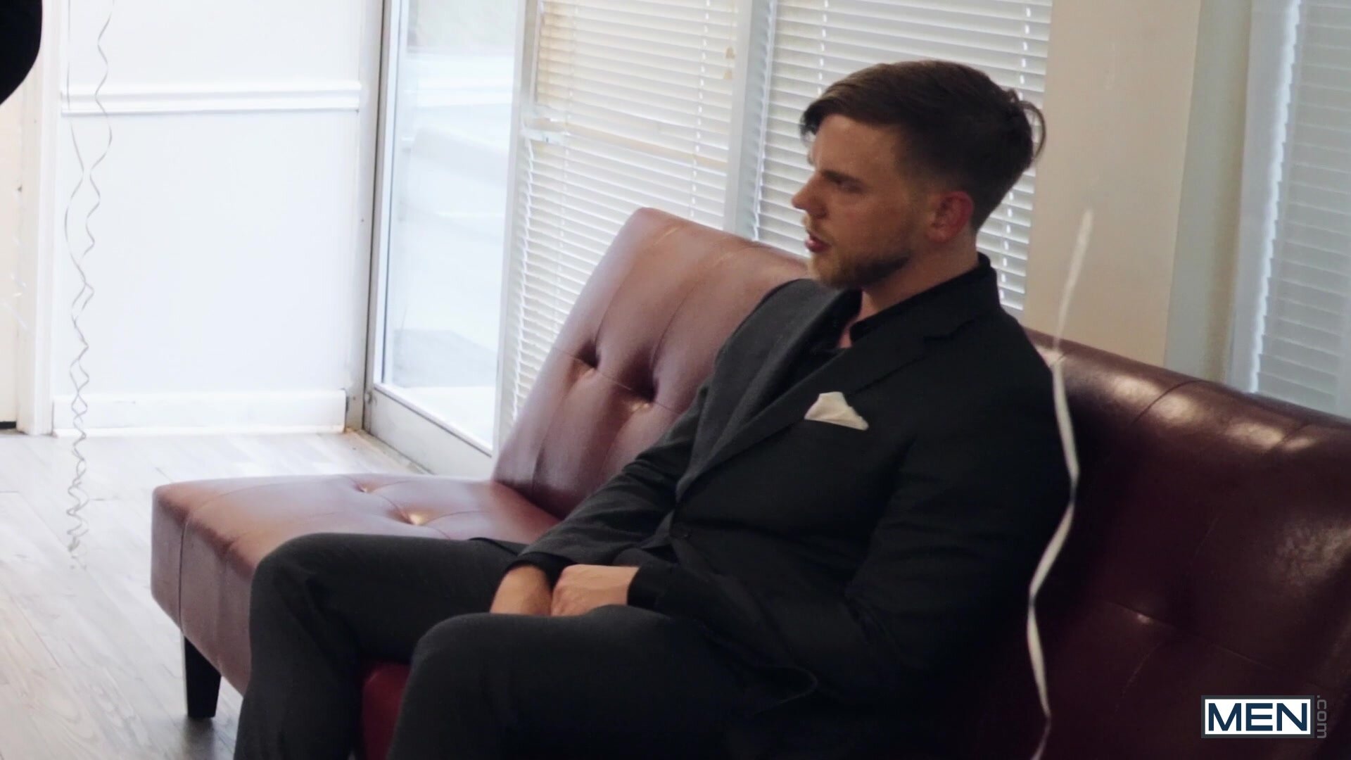 Horny Brunette Fondling Stiff Rigid Dong On Red Sofa