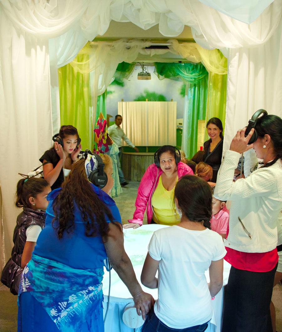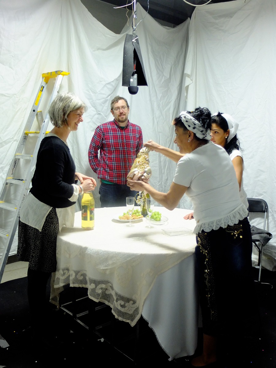 Диалог музея с пространственной средой конкретизируется и отражается посредством видеоинсталляций. В инсталляциях видео проецируется сверху вниз на большой круглый стол с белой тканью, служащей холстом. На краю стола висят несколько наушников, таким образом зрителю предлагается сесть вокруг стола и принять участие в диалоге. На выставке представлены два таких видеостола: на одном несколько женщин рома беседуют с представительницей музея и демонстрируют, как следует украсить стол на свадьбе, а на другом трое мужчин обсуждают различные аспекты культуры норвежских рома с представителем мужского пола из музея. Видео сняты сверху, так что видны только руки и жестикуляция.