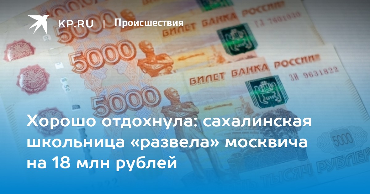 Хорошо отдохнула: сахалинская школьница «развела» москвича на 18 млн рублей Три года менеджер госкомпании спонсировал девушку с вымышленной анкетой на сайте знакомств