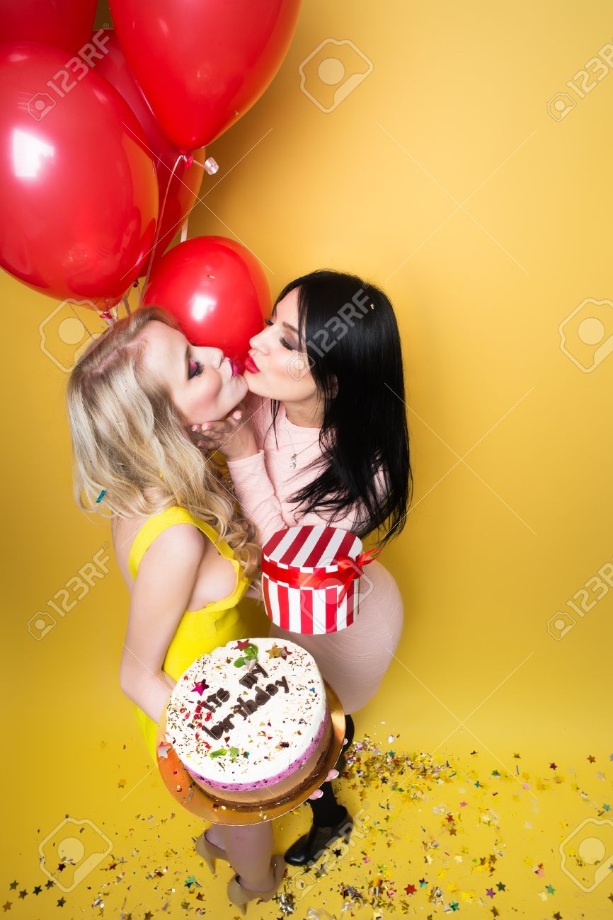 Girls Blowing Balloons