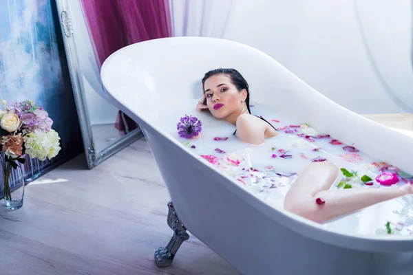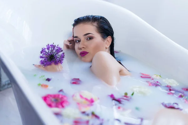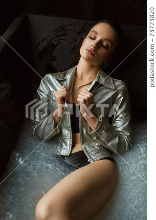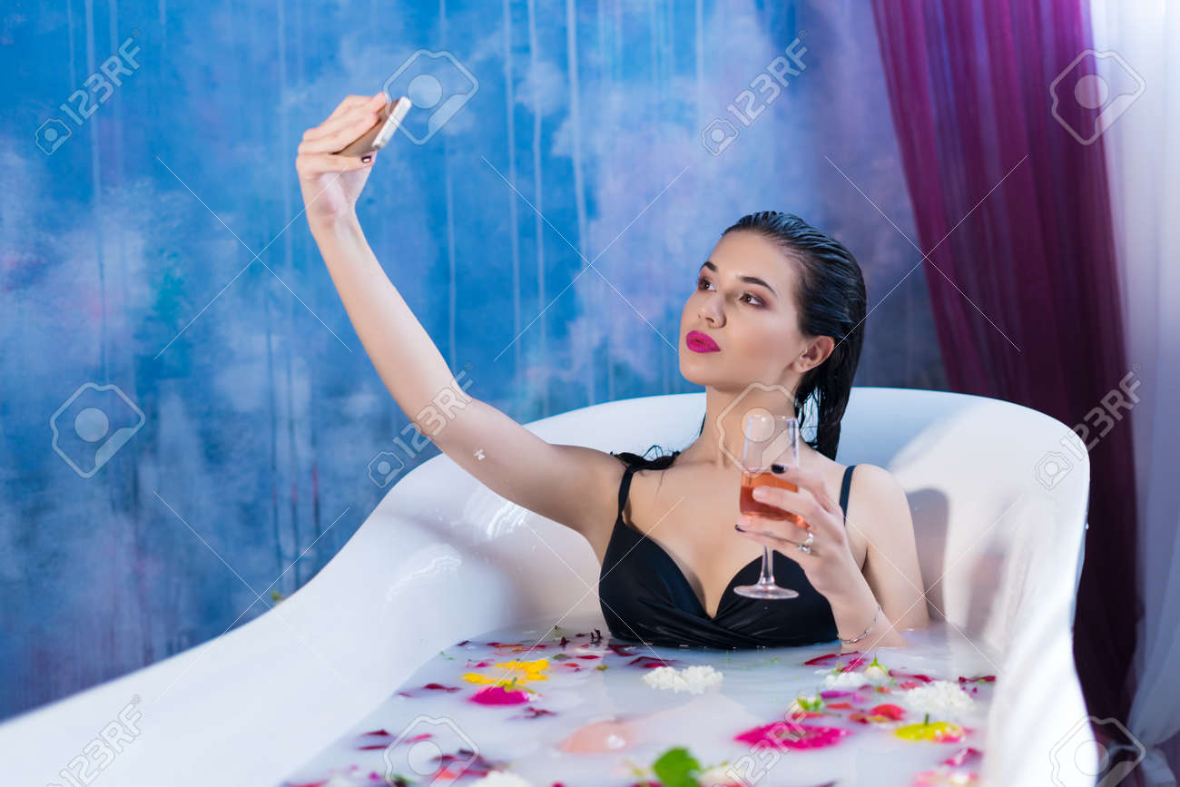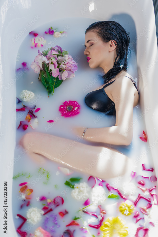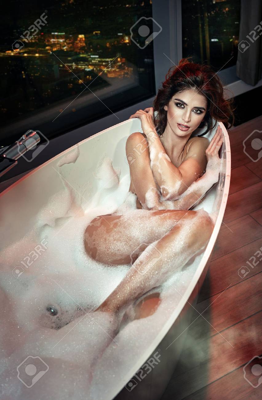 Hot Brunette Girl Bathing