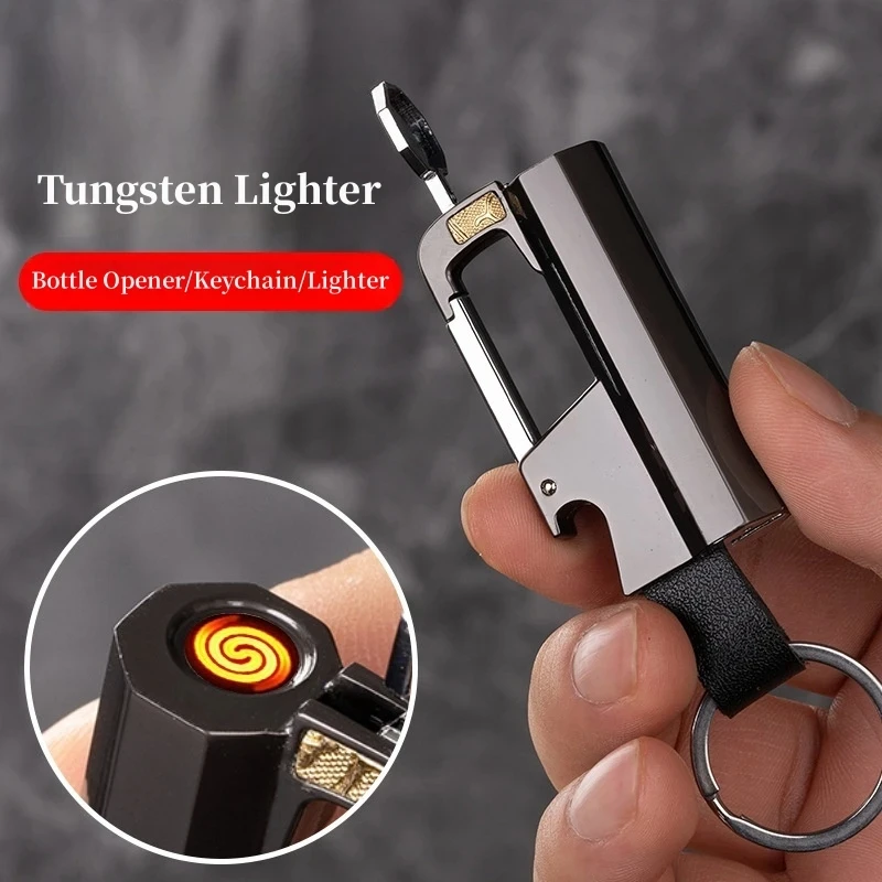 Hot New Creative Metal Multifunctional Keychain Bottle Opener USB Rechargeable Lighter Windproof Portable Tungsten Wire Igniter - Купить с бесплатной доставкой