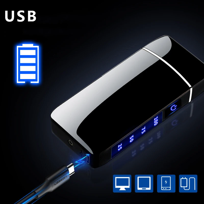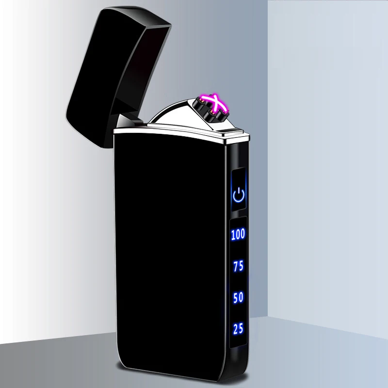 rQfKsGyumHere you can buy Hot Selling Metal Double Arc Plasma Windproof Lighter Touch Ignition LED Power Display Compact And Portable Men's Gift Lighter with free delivery to your post office.