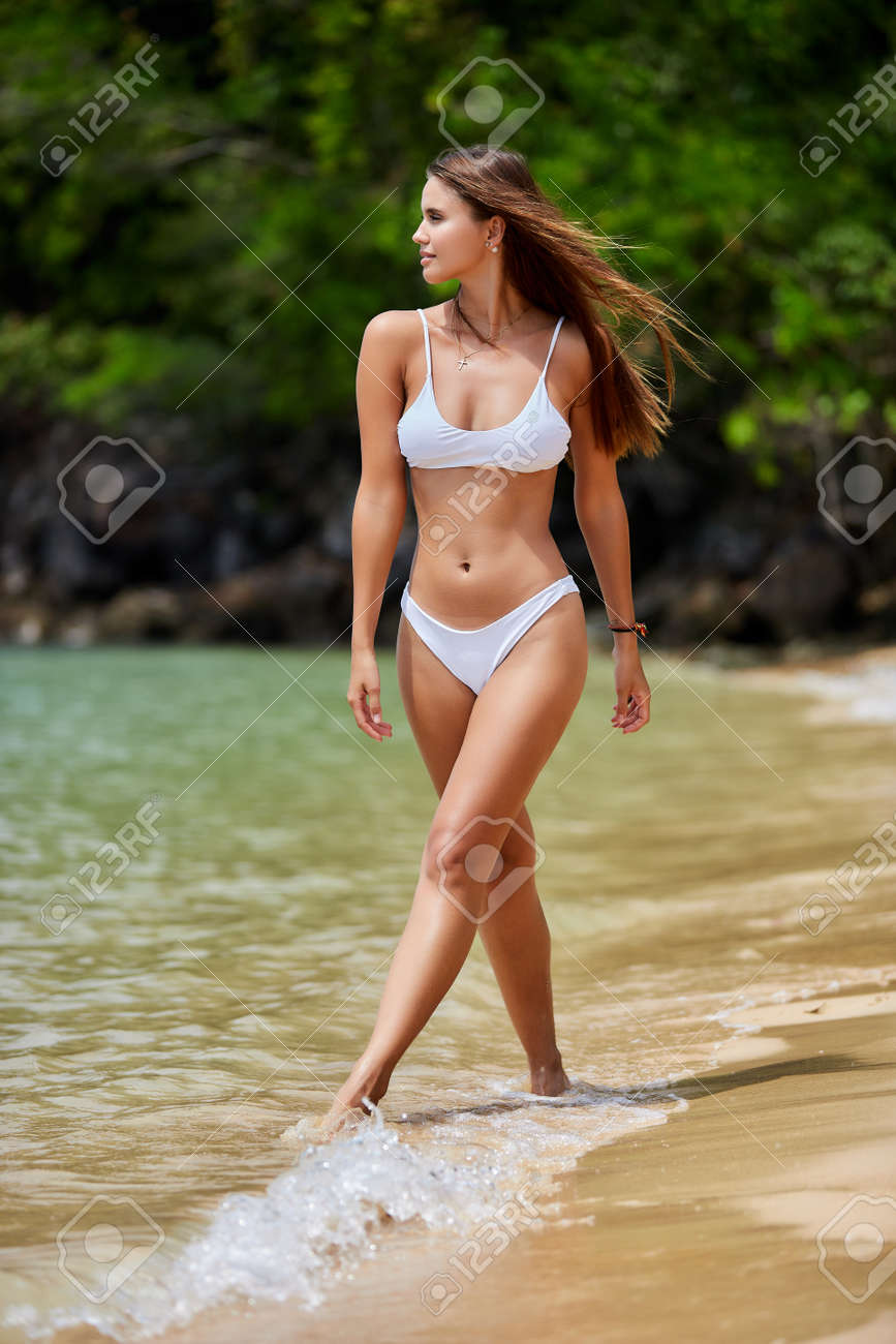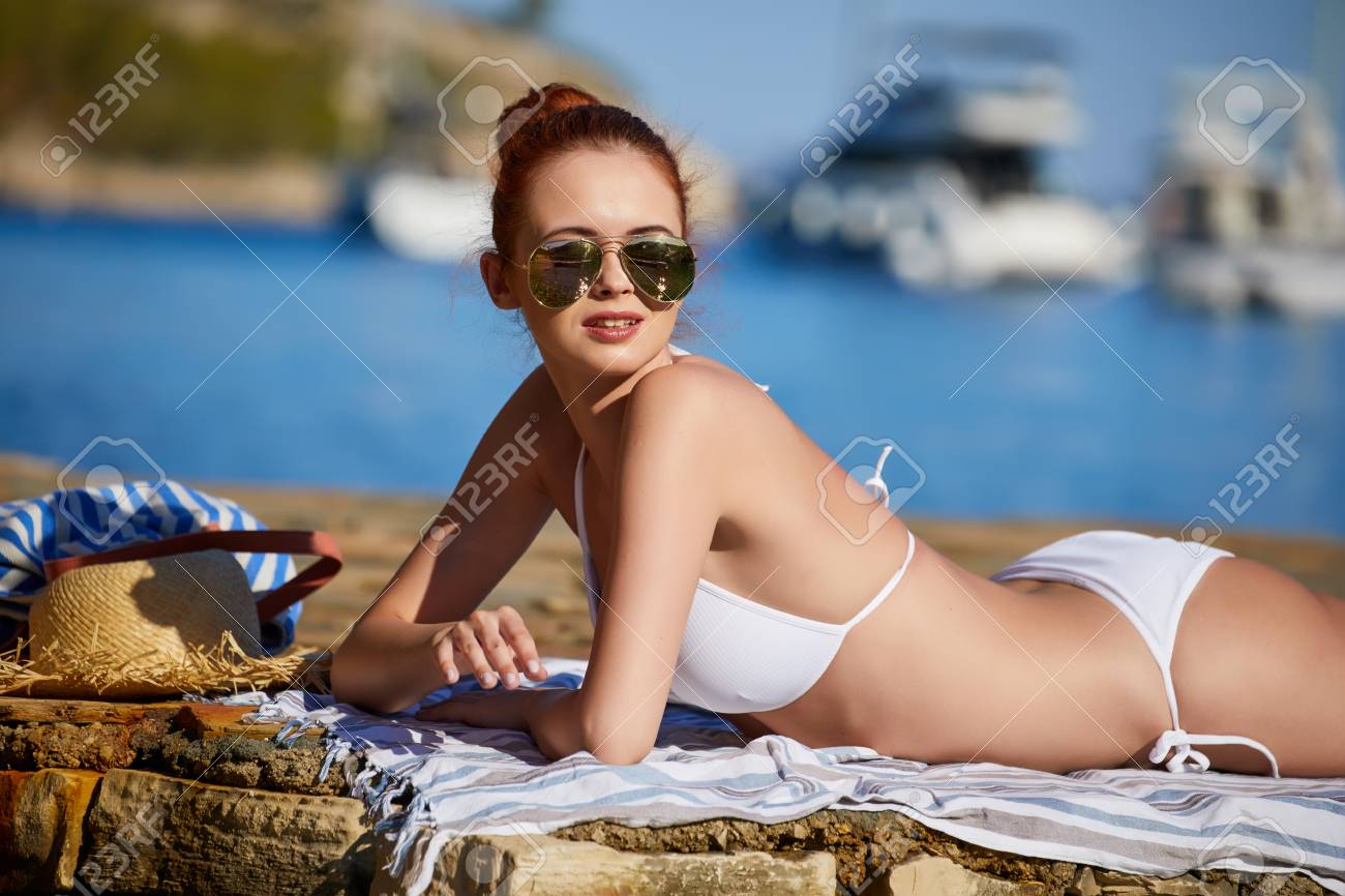 Hot babe white bikini photo