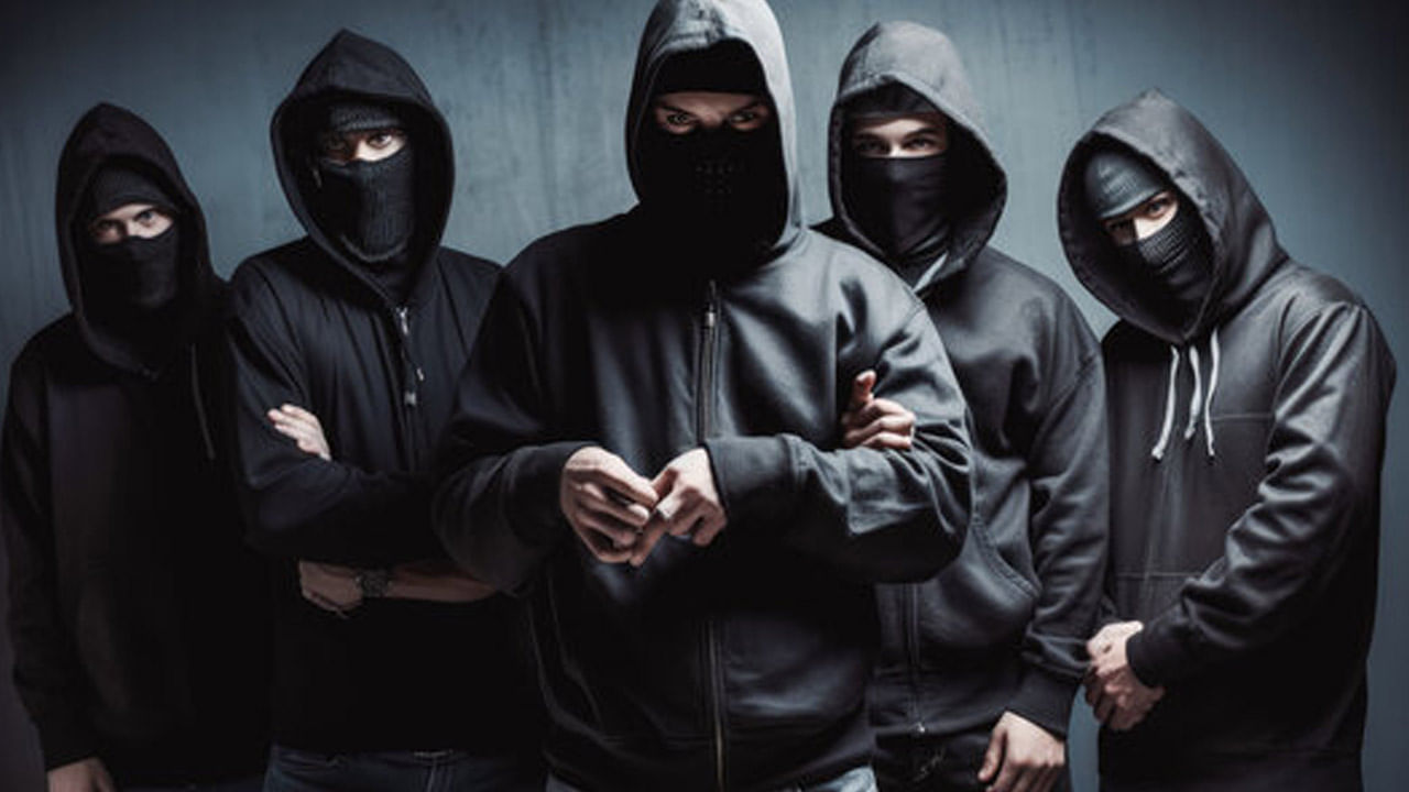 Hot masked group in the darksome