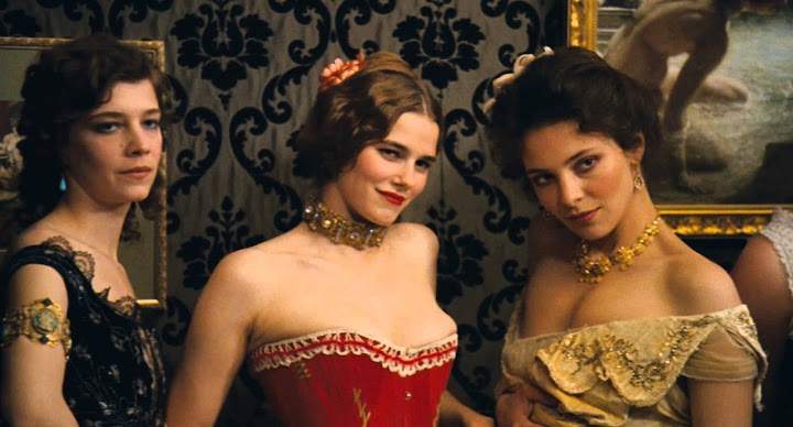 I actually learned something from this finale. I've always taken the show biz term "blackface" for granted, but in a porn context finally learned its real meaning. Rufus is played by a white actor (John Seeman) whose face is covered in shoe polish, but the rest of his body we soon see is lily white. After the sex, the black polish is now visible smeared all over the girls' faces.