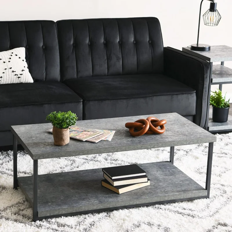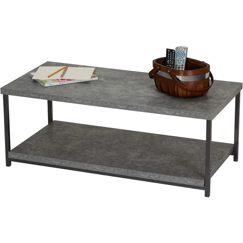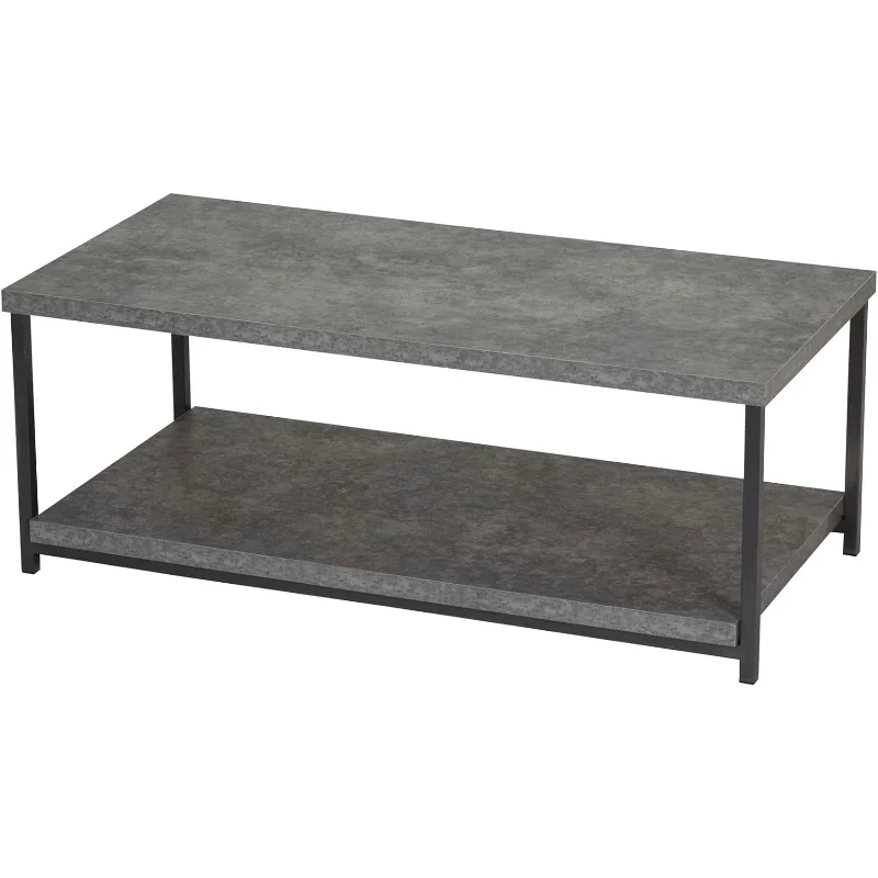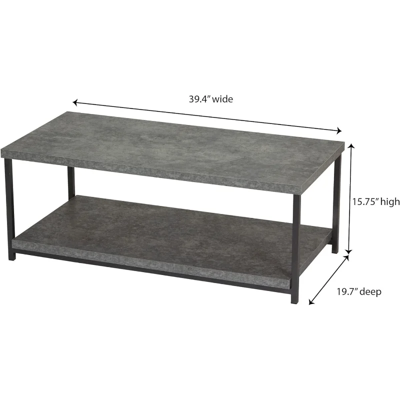 Household Essentials Jamestown Rectangular Coffee Table with Storage Shelf Rustic Slate Concrete and Black Metal - Купить с бесплатной доставкой