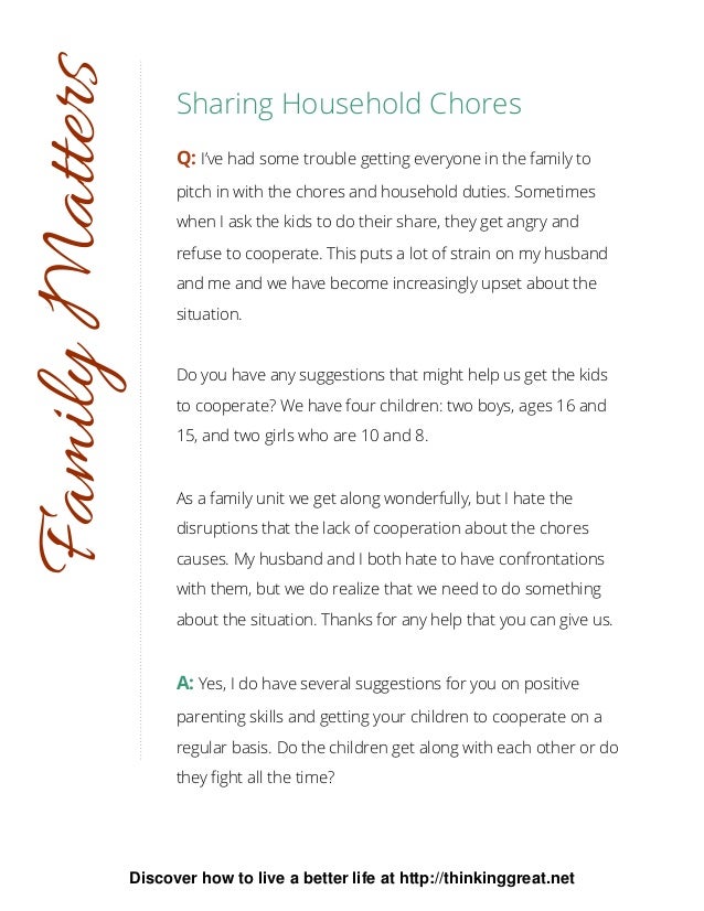Housework Free Essays - StudyMode