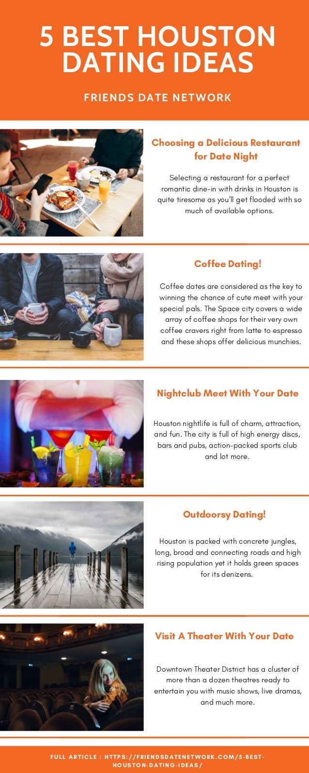 Dating In Houston . Are you looking to elevate your next date above ordering pizza and watching Netflix from your couch? Whether you're keeping an old flame alive or looking for ways to spark a new one, Houston has dozens of activities for your next romantic date out on the town .