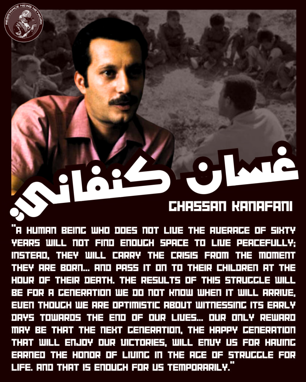 "A human being who does not live the average of sixty years will not find enough space to live peacefully; instead, they will carry the crisis from the moment they are born... and pass it on to their children at the hour of their death. The results of this struggle will be for a generation we do not know when it will arrive, even though we are optimistic about witnessing its early days towards the end of our lives... Our only reward may be that the next generation, the happy generation that will enjoy our victories, will envy us for having earned the honor of living in the age of struggle for life. And that is enough for us temporarily."