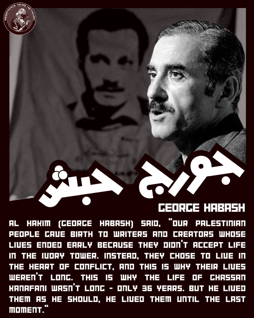 Our obligation towards Ghassan Kanafani demands that we comprehend our reality and its conditions and that we clearly define our goals, grounded in a deep conviction in our civilizational role as a nation. We must believe that the liberation of the land is a step towards unity, and that unity is a prerequisite for the renaissance that will elevate us to our rightful civilizational status among nations. Finally, here is a part from Ghassan Kanafani's ongoing will: