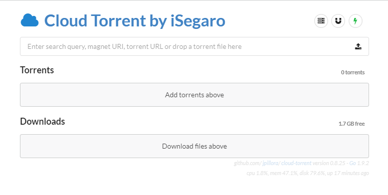 curl https://i.jpillora.com/cloud-torrent! | bash