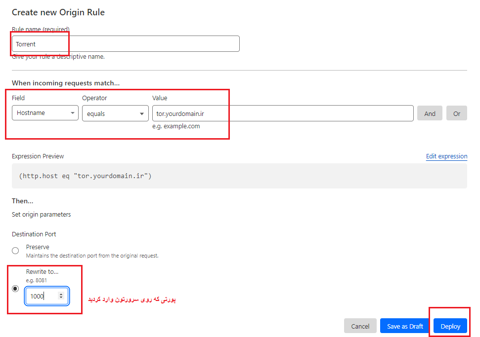 بچهایی که سرور NAT دارن روی کلادفلر از قسمت Rules بعد Origin Rules یک رول جدید بسازن و مثل عکس زیر با اطلاعات خودشون پر کنن