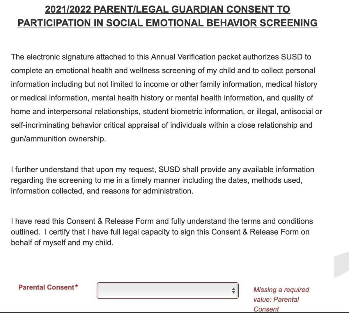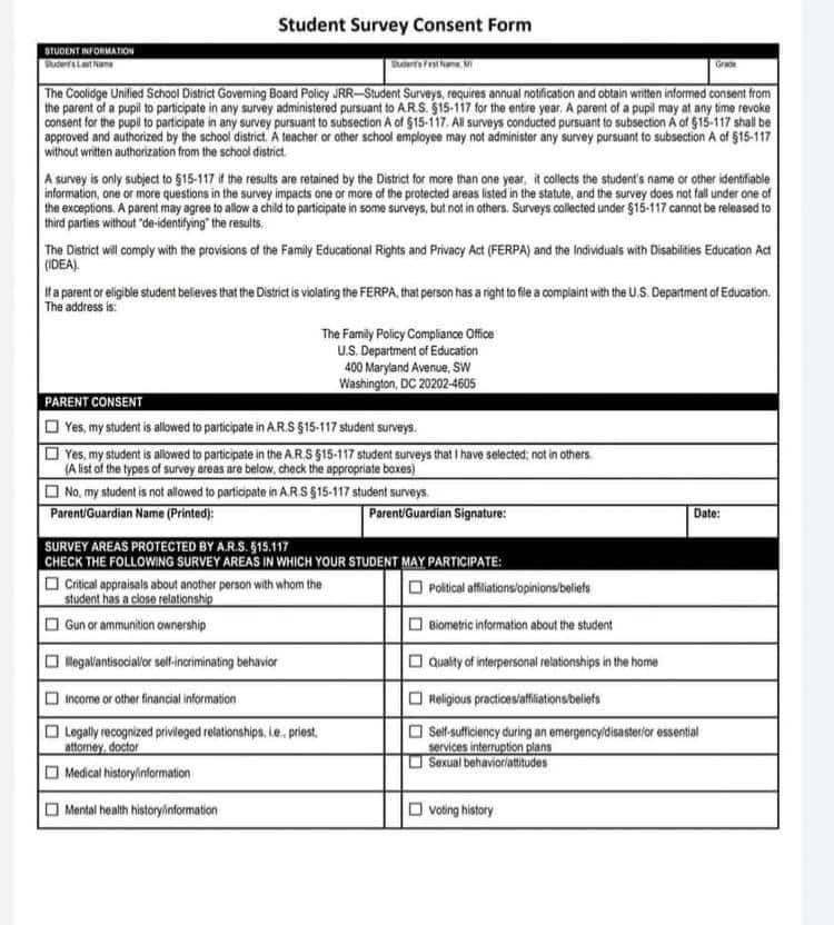 And this "Student Survey Consent Form" from Coolidge Unified School District: