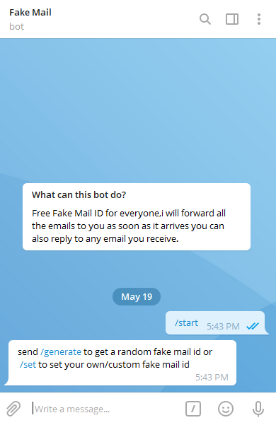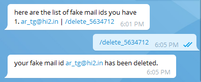 هذا البوت على عكس البوتات الاخرى التي تعطيك ايميل وهمي لفترة زمنية معينة و يستطيع اي شخص اخر اخذه بعدك