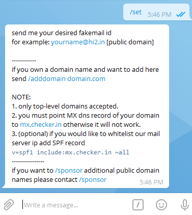 قم بإرسال الامر /set لتعيين ايميل خاص بك