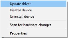 Click Update Driver on the menu.