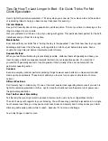 The following are tried and tested methods that are helping men last longer in bed naturally, without pills or creams . Next, it's time to get them working for you . If you're a woman, read this first . For the men, this guide covers a lot . So we've broken it down to these 7 steps . The 7 Steps To Last Longer In Bed Naturally