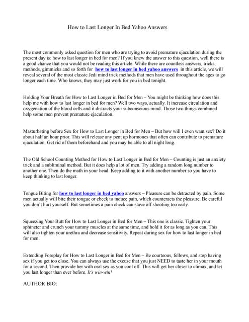 How To Last Longer In Bed Yahoo