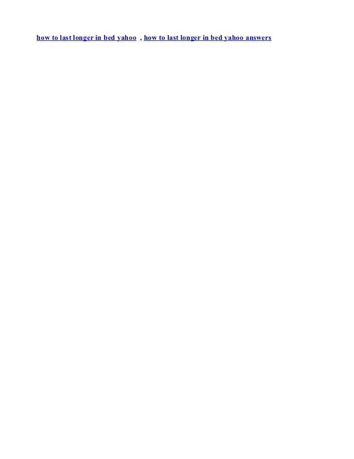 How to last longer in bed? | Yahoo Answers