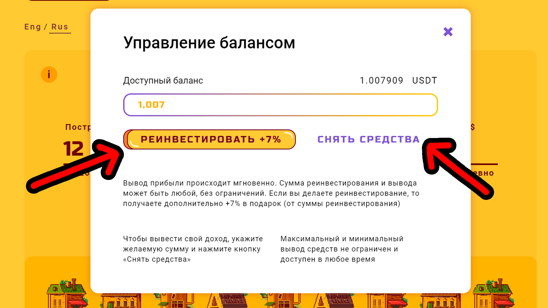 Every 24 Hours You Need to Reinvest Money or Withdraw It to Your Wallet: