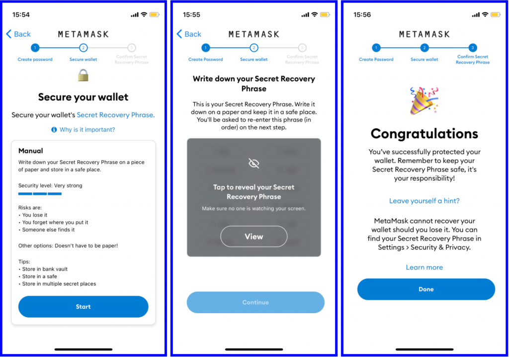 Register In The Application - Set Your Personal Password And Recovery Phrase: