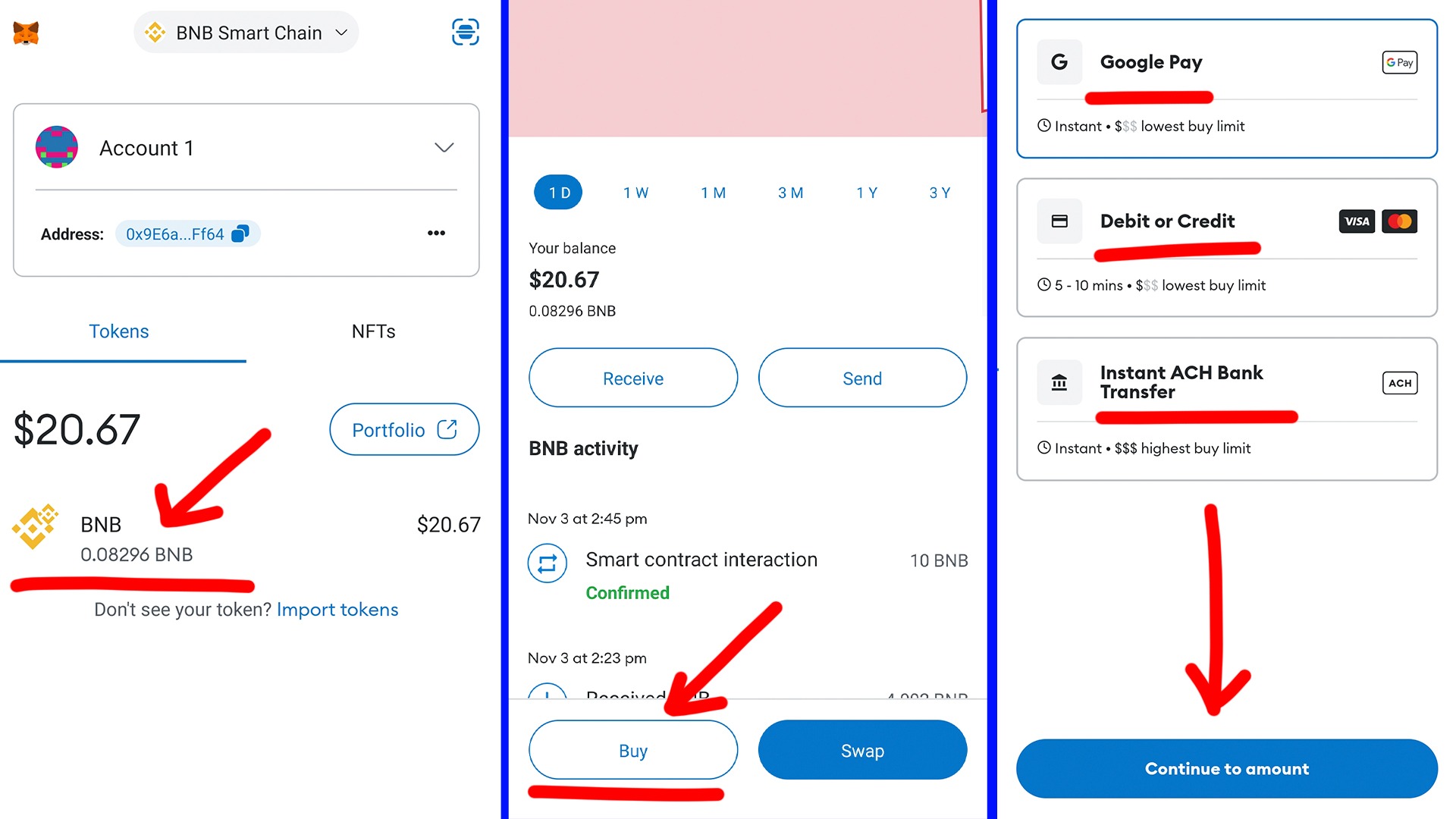 Top up with 0.01 BnB for commissions: