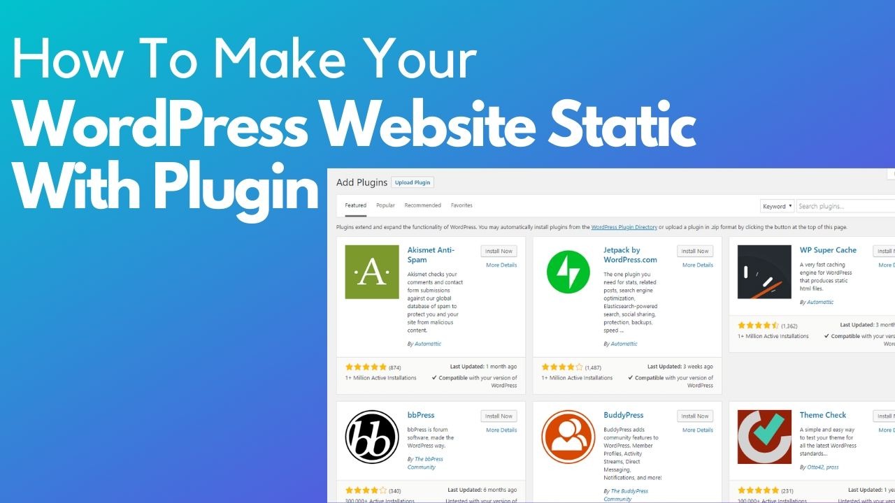 How To Make Your WordPress Website Static With Plugin