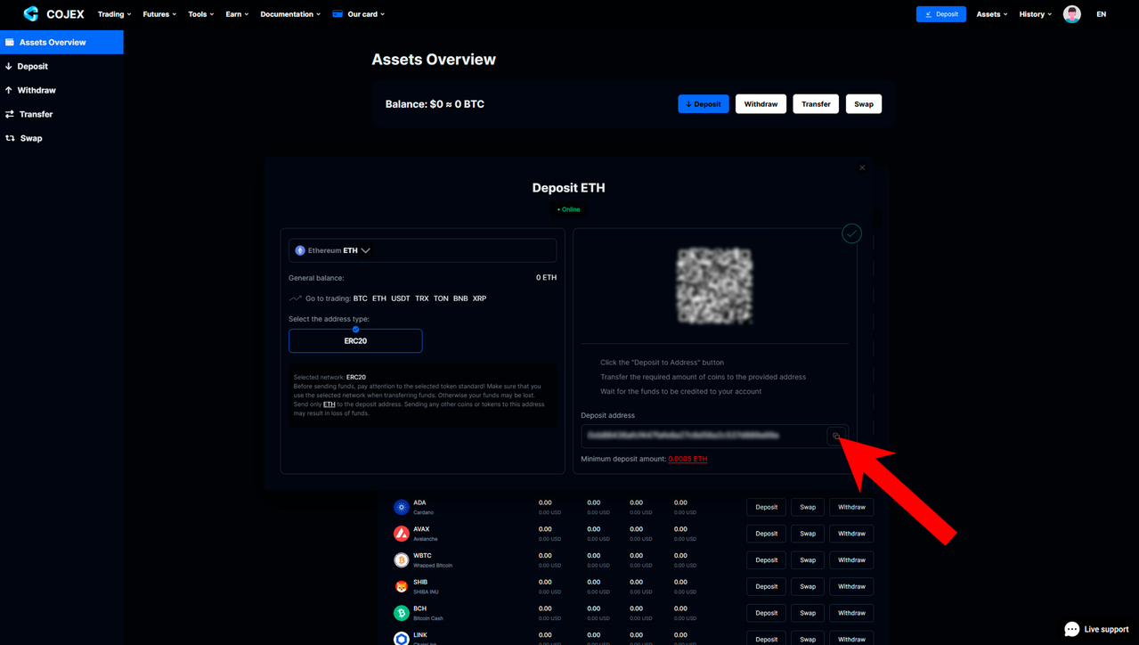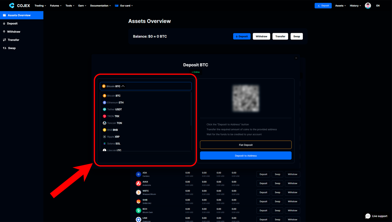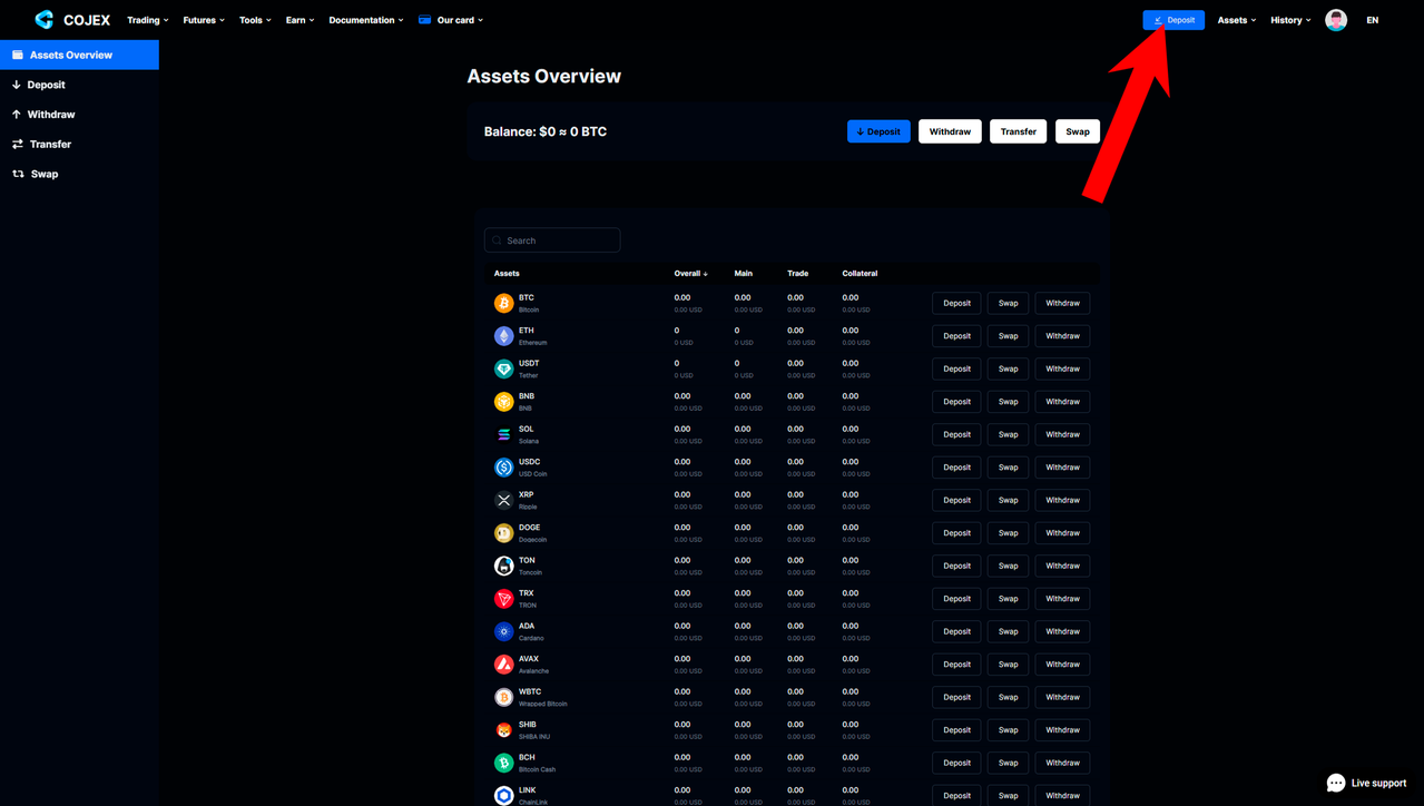 2️⃣ After you create an account, make a deposit to your account in any coins.