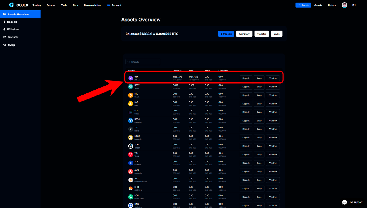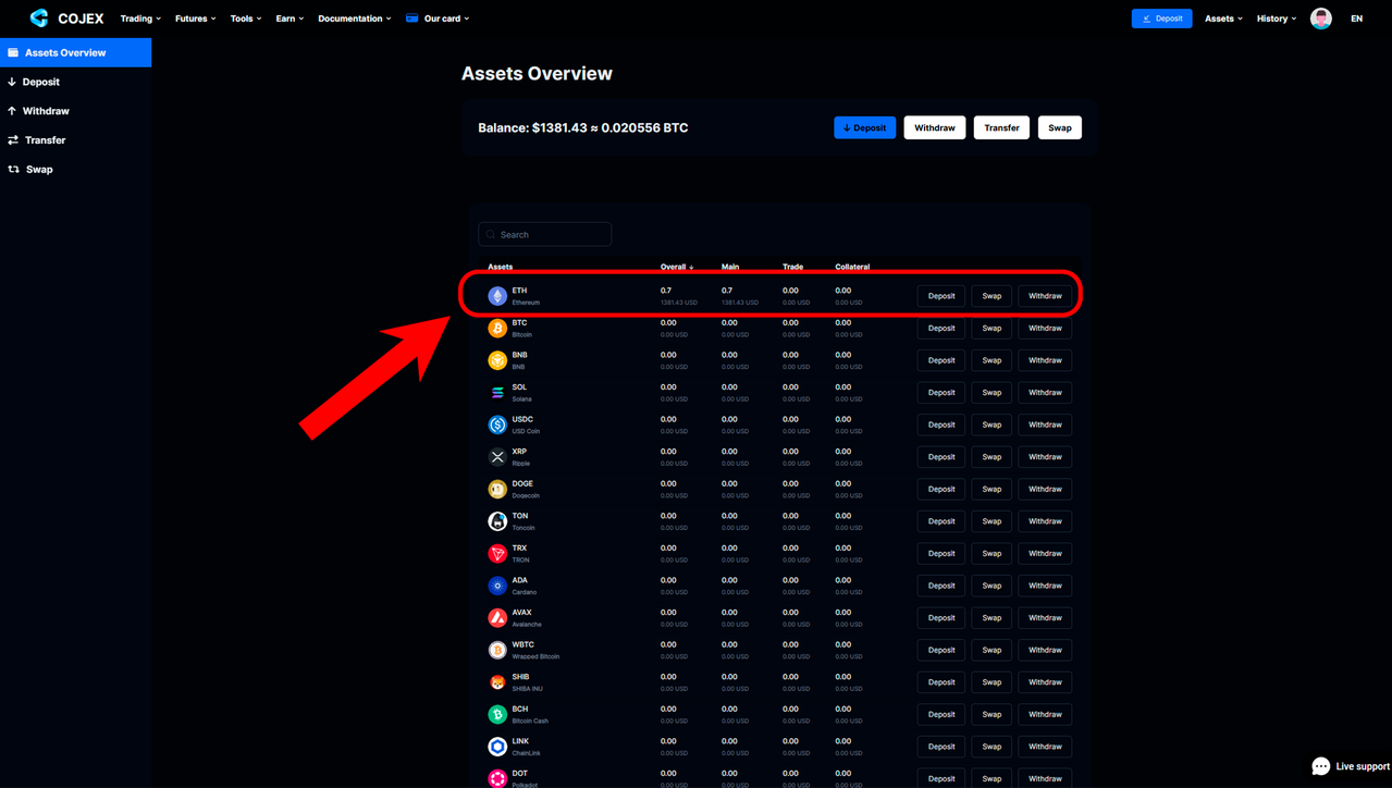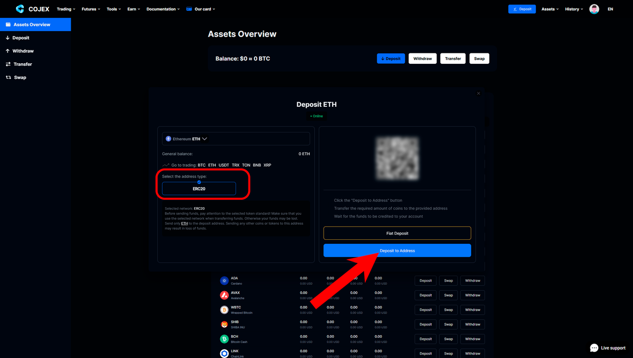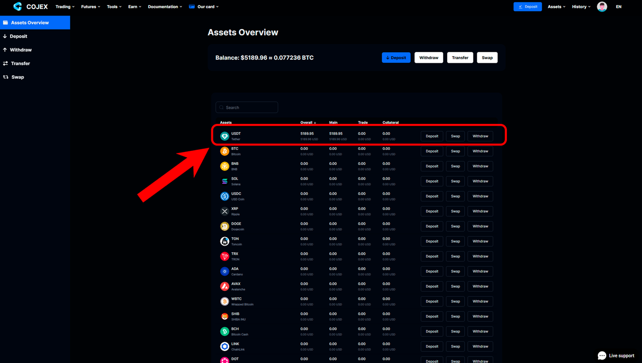 2️⃣ After you create an account, make a deposit to your account in any coins.