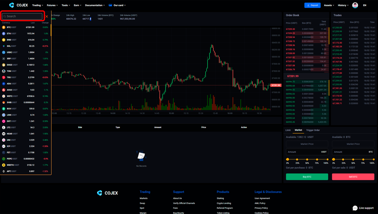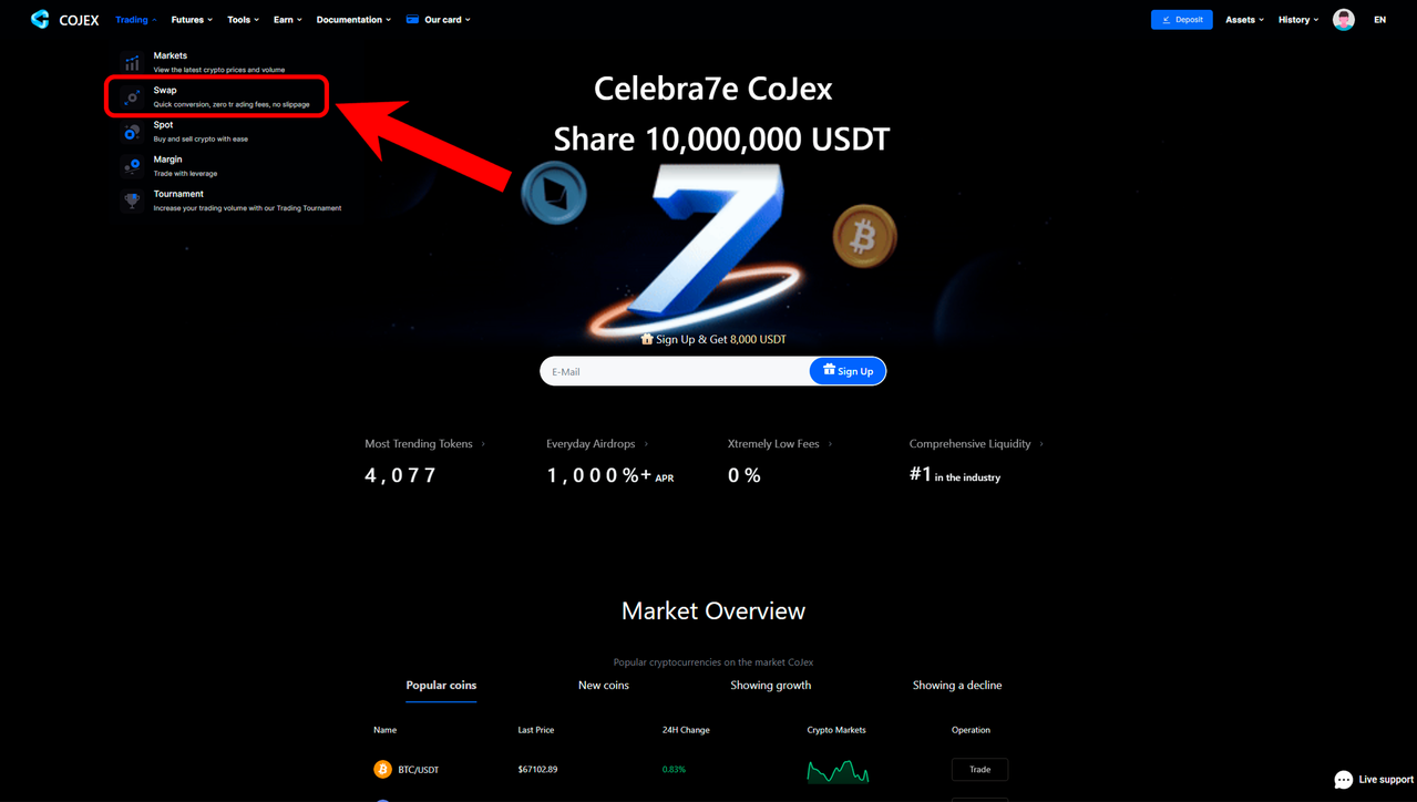 Link to the exchange: https://cojex.com