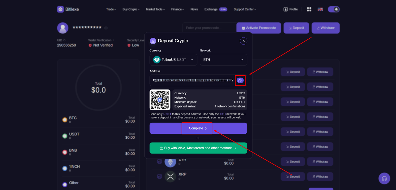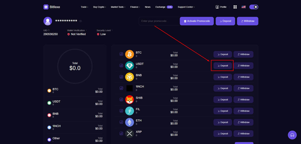 2️⃣ After you create an account, make a deposit to your account in any coins: