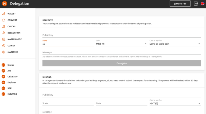 2. After registering and logging in, open the “Delegation” section: