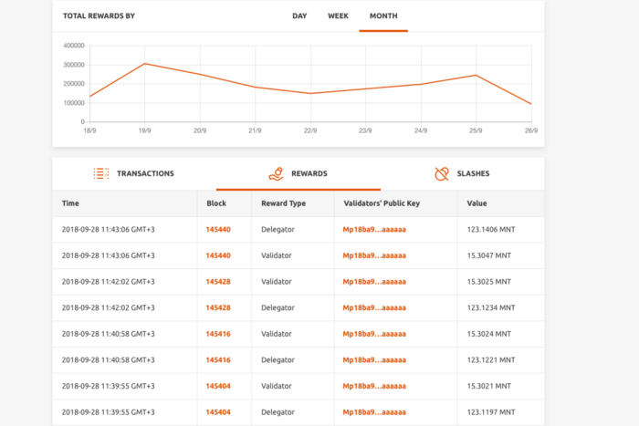 Delegators receive block rewards and transaction commissions in proportion to their stakes in accordance with the conditions established by the validators. It is important to remember that delegators share risks with their validators, so do not “put all your eggs in one basket” but diversify your stakes between the best candidates in your opinion.
