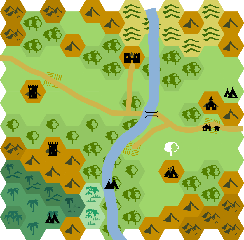 - Карта регіону (результат: карта розміром 5x5 чи 10x10 гексів без зайвих позначень)