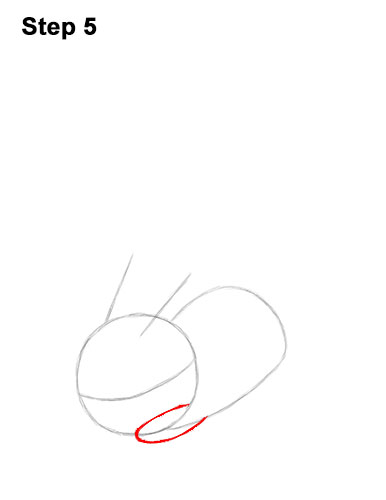 Step 5. Step 5: On the lower, right side of the head, draw a small arc as a guide for Pikachu's arm.