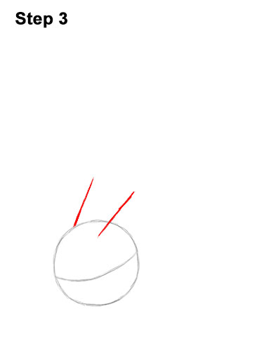 Step 3. Step 3: Draw two short, diagonal lines on top of the head as guides for Pikachu's ears.