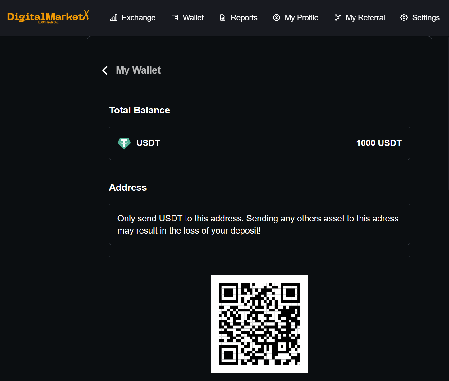 After sending funds, your money will be credited to the exchange (approximately 10 minutes after sending funds)