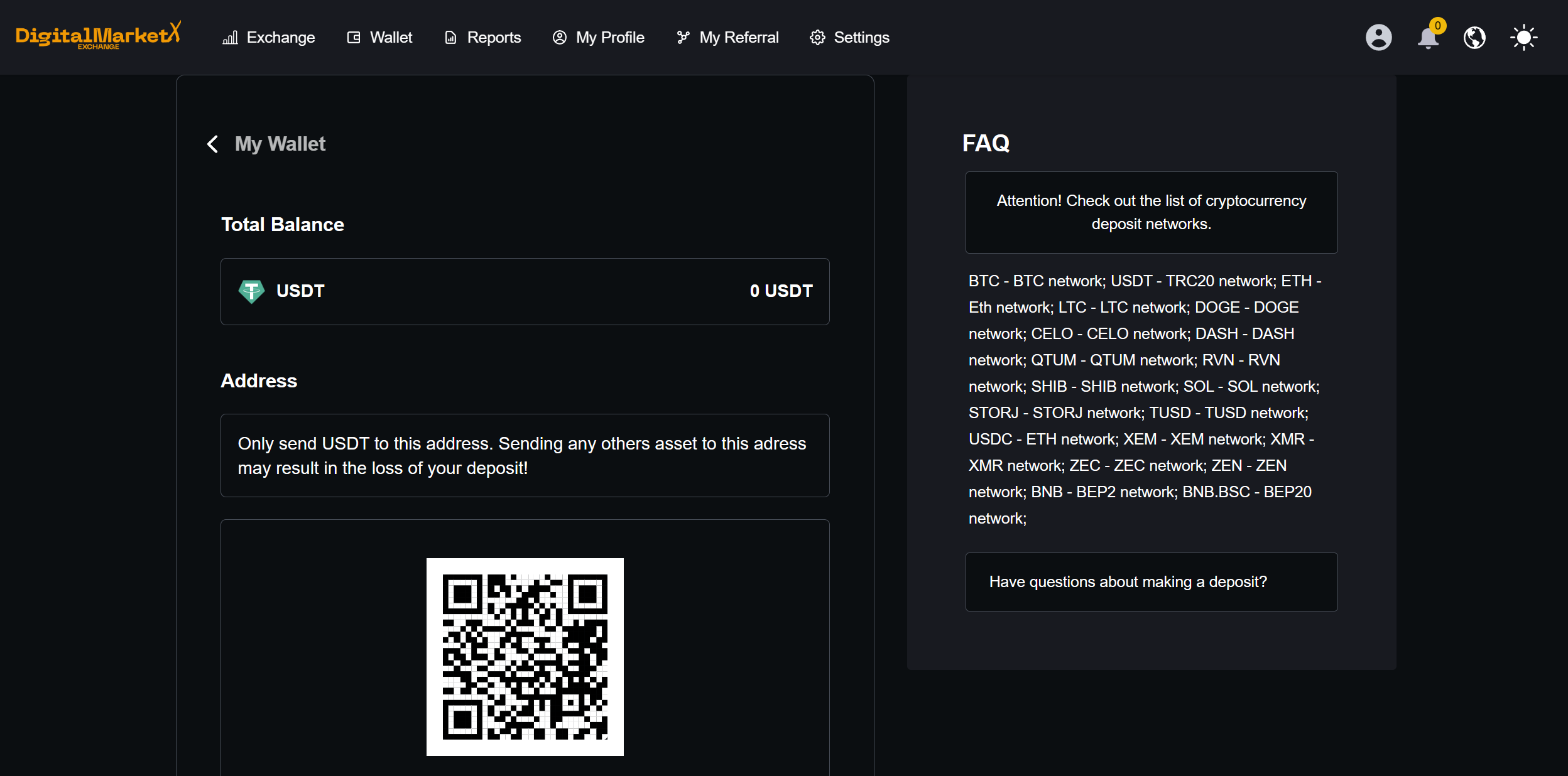 Top up of USDT in the TRC20 network!