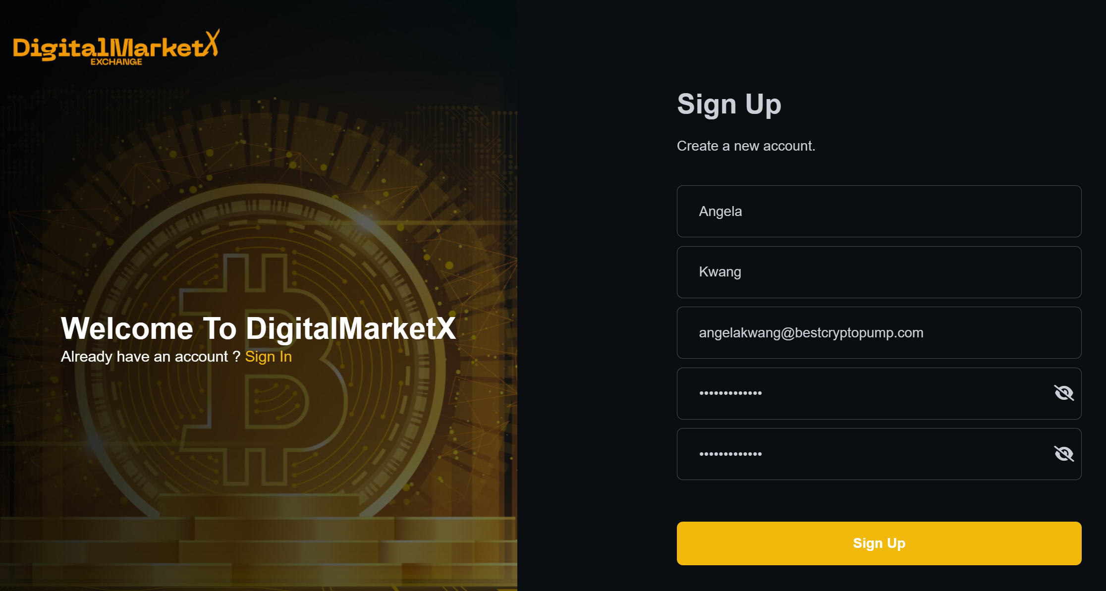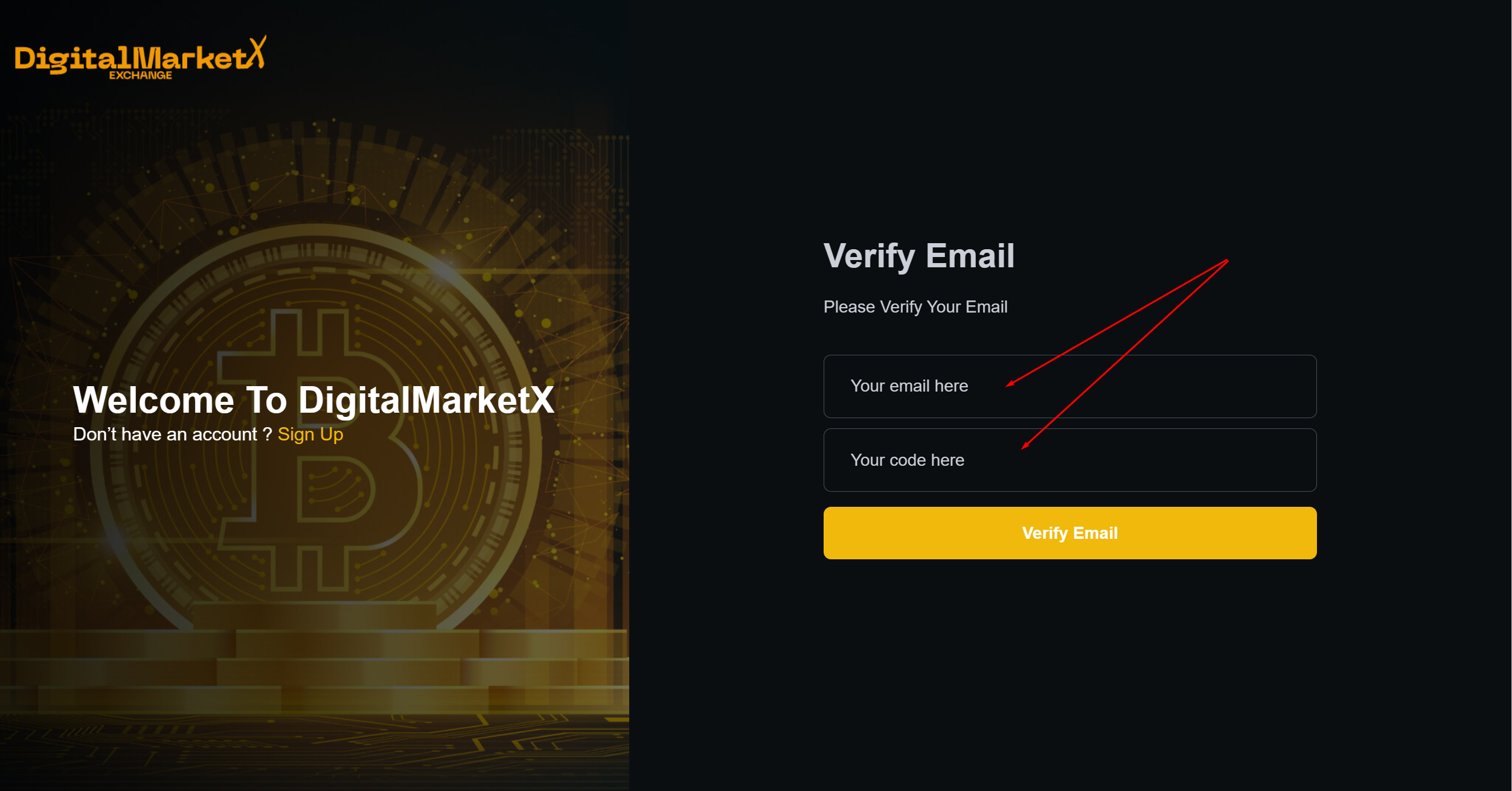 Go to the website of the DigitalMarketX exchange - https://digitalmarketx.com/signup