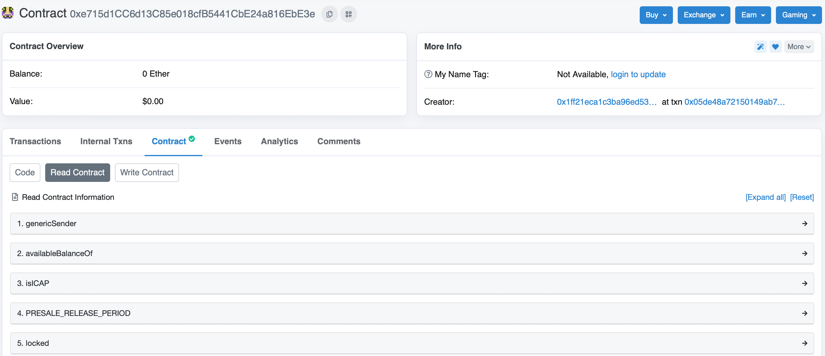 - Follow the link https://etherscan.io/address/0xe715d1cc6d13c85e018cfb5441cbe24a816ebe3e#readContract