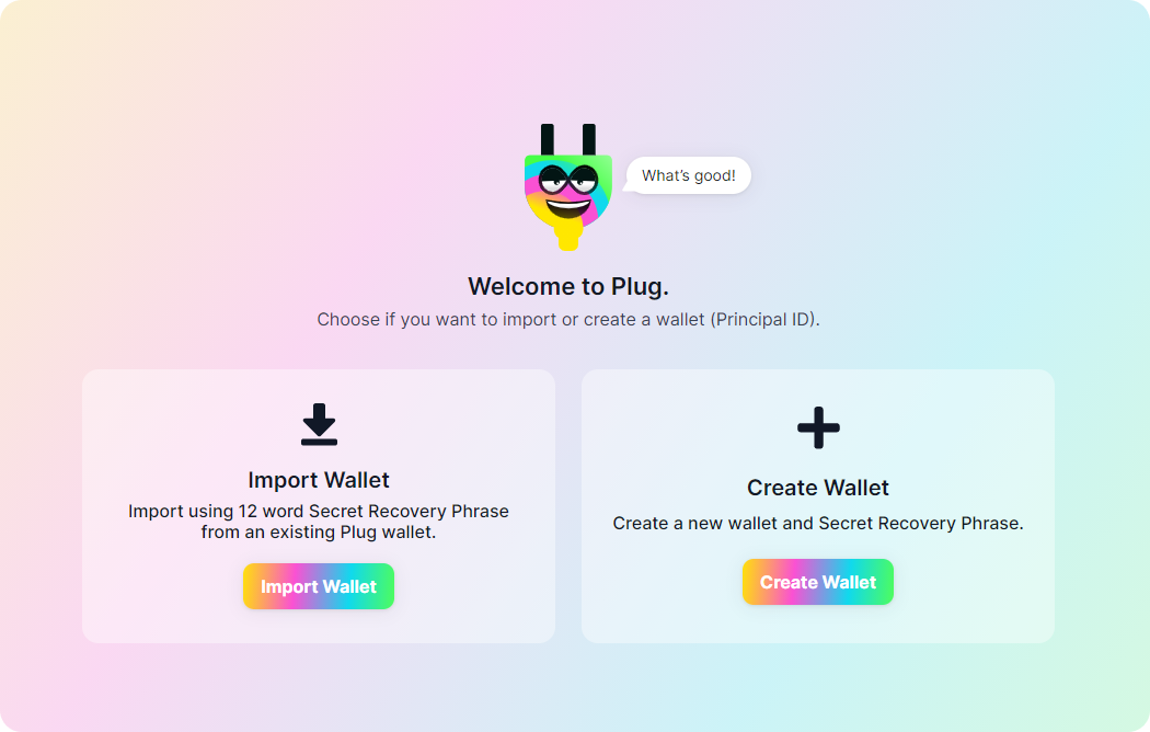 (Note: right now you can only import previously created Plug accounts only, not other wallets from different providers.)