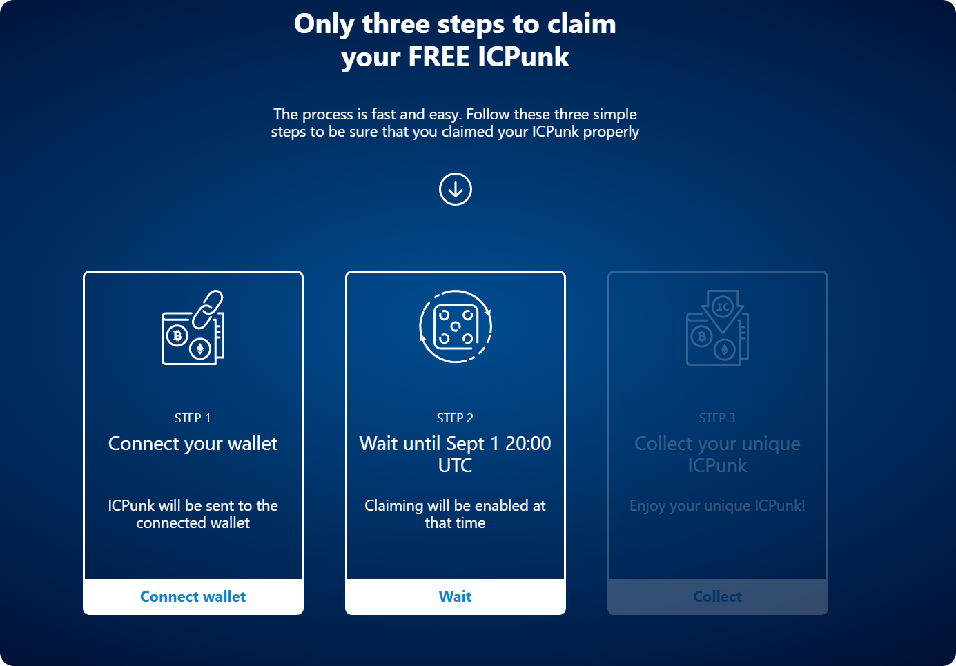 The blue button on ICPunks should now say “Wait for launch”. This means you are now successfully registered in the ICPunks drop, using Plug!