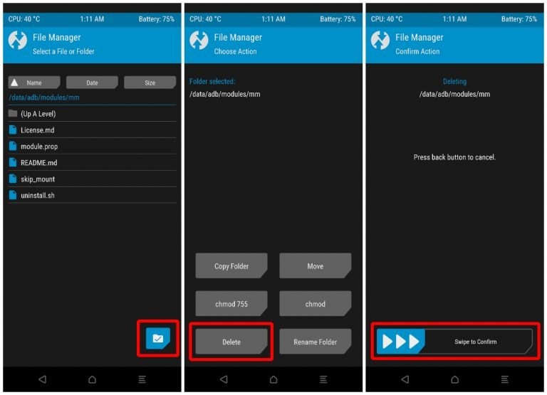 On the next page, swipe at the bottom to confirm the delete.Uninstall Magisk Module from TWRP recovery